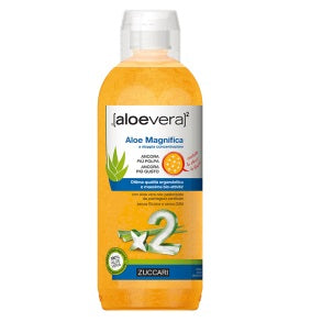 ALOEVERA2 ALOE MAGNIFICA FormatoConfezione da 1 litro.Aloe vera non pastorizzata 2 volte concentrata attraverso il processo ReversOsmose.Con filetti d’Aloe piu' carnosi, sminuzzati in frammenti polposi.