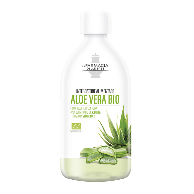 FARMACIA DELLE ERBE ALOE VERA BIO SUCCO PURO E POLPAFormatoBottiglia in vetro da 500 ml Il succo puro e polpa di Aloe Vera Bio ha un’azione lenitiva ed emolliente del tratto gastrico ed e' un valido supporto alla depurazione dell’organismo. La formula e' arricchita con l’estratto di Acerola dall’alto contenuto in Vitamina C.CONTENUTO IN POLISACCARIDI 8.000 MG/L