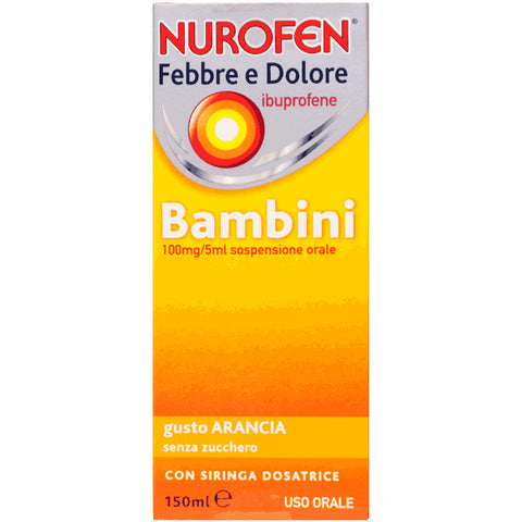 PRINCIPI ATTIVI: Ibuprofene. ECCIPIENTI Polisorbato 80, glicerina, sciroppo di maltitolo, saccarina sodica, acido citrico, sodio citrato, gomma di xanthan, sodio cloruro, bromuro di domifene, acqua depurata, aroma arancia o fragola. INDICAZIONI Trattamento sintomatico della febbre e del dolore lieve o moderato. CONTROINDICAZIONI/EFF.SECONDARI Ipersensibilita' all'ibuprofene o ad uno qualsiasi degli eccipienti. Bambini di eta' inferiore a 3 mesi o di peso inferiore a 5,6 kg. Ipersensibilita' all'acido acetilsalicilico o ad altri analgesici, antipiretici, antinfiammatori non steroidei (FANS), in particolare quando l'ipersensibilita' e' associata a poliposi nasale e asma. Ulcera peptica attiva. Grave insufficienza renale o epatica. Severa insufficienza cardiaca. Storia di emorragia gastrointestinale o perforazione relativa a precedenti trattamenti attivi o storia di emorragia/ulcera peptica ricorrente (due o piu' episodi distinti di dimostrata ulcerazione o sanguinamento). Uso concomitante di FANS, compresi gli inibitori specifici della COX-2. Gravidanza e allattamento. POSOLOGIA La dose giornaliera e' strutturata in base al peso ed all'eta' del paziente. Gli effetti indesiderati possono essere minimizzati con l'uso della dose minima efficace per la durata di trattamento piu' breve possibile necessaria per controllare i sintomi. Nei bambini di eta' compresa tra 3 e 6 mesi limitare la somministrazione a quelli di peso superiore ai 5,6 kg. La somministrazione orale a lattanti e bambini di eta' compresa fra 3 mesi e 12 anni dovrebbe avvenire mediante siringa dosatrice o cucchiaino dosatore forniti con il prodotto. La scala graduata presente sul corpo della siringa riporta in evidenza le tacche per i diversi dosaggi; in particolare la tacca da 2,5 ml corrispondente a 50mg di ibuprofene e la tacca da 5 ml corrispondente a 100 mg di ibuprofene. Il cucchiaino dosatore riporta due tacche per due diversi dosaggi: la tacca da 2,5 ml corrispondente a 50 mg di ibuprofene e la tacca da 5 ml corrispondente a 100 mg di ibuprofene. La dose giornaliera di 20-30 mg/kg di peso corporeo, suddivisa 3 volte al giorno ad intervalli di 6-8 ore. Nel caso di febbre post-vaccinazione riferirsi al dosaggio sopra indicato, somministrando una dose singola seguita, se necessario, da un'altra dose dopo 6 ore. Non somministrare piu' di due dosi nelle 24 ore. Il prodotto e' inteso per trattamenti di breve durata. Nei bambini di eta' inferiore ai sei mesi consultare il medico se i sintomi persistono dopo 24 ore di trattamento. - Istruzioni per l'utilizzo della siringa dosatrice. Svitare il tappo spingendolo verso il basso e girandolo verso sinistra. Introdurre a fondo la punta della siringa nel foro del sottotappo. Agitare bene. Capovolgere il flacone, quindi, tenendo saldamente la siringa, tirare delicatamente lo stantuffo verso il basso facendo defluire la sospensione nella siringa fino alla tacca corrispondente alla dose desiderata. Rimettere il flacone in posizione verticale e rimuovere la siringa ruotandola delicatamente. Introdurre la punta della siringa nella bocca del bambino, ed esercitare una lieve pressione sullo stantuffo per far defluire la sospensione. Dopo l'uso avvitare il tappo per chiudere il flacone e lavare la siringa con acqua calda. Lasciarla asciugare, tenendola fuori dalla portata e dalla vista dei bambini. CONSERVAZIONE Nessuna particolare. AVVERTENZE Gli effetti indesiderati possono essere minimizzati con l'uso della piu' bassa dose efficace per la piu' breve durata possibile di trattamento che occorre per controllare i sintomi. Evitare l'uso in concomitanza di FANS, inclusi gli inibitori selettivi della COX-2. Gli analgesici, antipiretici, antinfiammatori non steroidei possono causare reazioni di ipersensibilita', potenzialmente gravi (reazioni anafilattoidi), anche in soggetti non precedentemente esposti a questo tipo di farmaci. Il rischio di reazioni di ipersensibilita' dopo assunzione di ibuprofene e' maggiore nei soggetti che abbiano presentato tali reazioni dopo l'uso di altri analgesici, antipiretici, antinfiammatori non steroidei e nei soggetti con iperreattivita' bronchiale (asma), poliposi nasale o precedenti episodi di angioedema. Durante il trattamento con tutti i FANS, in qualsiasi momento, con o senza sintomi di preavviso o precedente storia di gravi eventi gastrointestinali, sono state riportate emorragia gastrointestinale, ulcerazione e perforazione, che possono essere fatali. I pazienti anziani hanno un aumento della frequenza di reazioni avverse ai FANS, specialmente emorragie e perforazioni gastrointestinali, che possono essere fatali. Negli anziani e in pazienti con storia di ulcera, soprattutto se complicata da emorragia o perforazione, il rischio di emorragia gastrointestinale, ulcerazione o perforazione e' piu' alto con dosi aumentate di FANS. Questi pazienti devono iniziare il trattamento con la piu' bassa dose disponibile. L'uso concomitante di agenti protettori (es. misoprostolo o inibitori di pompa protonica) deve essere considerato per questi pazienti ed anche per pazienti che assumono basse dosi di aspirina o altri farmaci che possono aumentare il rischio di eventi gastrointestinali. Pazienti con storia di tossicita' gastrointestinale, in particolare anziani, devono riferire qualsiasi sintomo gastrointestinale inusuale (soprattutto emorragia gastrointestinale) in particolare nelle fasi iniziali del trattamento. Cautela deve essere prestata ai pazienti che assumono farmaci concomitanti che potrebbero aumentare il rischio di ulcerazione o sanguinamento, come corticosteroidi orali, anticoagulanti come warfarin, inibitori selettivi del reuptake della serotonina o agenti antiaggreganti come l'aspirina. Quando si verifica emorragia o ulcerazione gastrointestinale il trattamento deve essere sospeso. I FANS devono essere somministrati con cautela ai pazienti con una storia di malattia gastrointestinale (colite ulcerosa, morbo di Crohn) poiche' tali condizioni possono essere esa