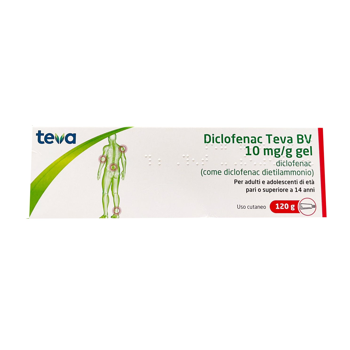 Posologia. Adulti e adolescenti di eta' pari o superiore a 14 anni: Diclofenac Teva BV si usa due volte al giorno (preferibilmente al mattino e alla sera). In base all'estensione della parte interessata da trattare, si applica un quantitativo di dimensioni variabili tra una ciliegia e una noce, equivalente a 1-4 g di gel (23,2-92,8 mg di diclofenac, sale di dietilammonio) corrispondenti a 20-80 mg di diclofenac sodico. Questa dose e' sufficiente per trattare un'area di 400-800 cm^2. La dose massima giornaliera e' di 8 g di gel, corrispondenti a 185,6 mg di diclofenac dietilammonio (corrispondenti a 160 mg di diclofenac sodico). La durata d'uso dipende dai sintomi e dalla malattia di base. Diclofenac Teva BV non puo' essere usato per piu' di una settimana senza consultare il medico. Se i sintomi peggiorano o non migliorano entro 3-5 giorni, occorre consultare il medico. Gruppi di pazienti speciali. Pazienti anziani: non sono richiesti speciali adeguamenti della dose. A causa del potenziale profilo di effetti indesiderati, le persone anziane devono essere sottoposte ad un attento monitoraggio. Pazienti con compromissione della funzionalita' renale: non e' necessaria alcuna riduzione della dose per i pazienti con compromissione della funzionalita' renale. Pazienti con compromissione della funzionalita' epatica:non e' richiesta alcuna riduzione della dose per i pazienti con compromissione della funzionalita' epatica. Bambini e adolescenti (al di sotto dei 14 anni): non sono disponibili dati sufficienti sull'efficacia e la sicurezza nei bambini e negli adolescenti al di sotto dei 14 anni (vedere paragrafo 4.3). Modo di somministrazione: per uso cutaneo. Si applica un sottile strato di gel sulle parti del corpo interessate e si friziona delicatamente per farlo penetrare nella pelle. Le mani devono essere lavate a meno che non siano la zona da trattare. Prima di applicare un bendaggio (vedere anche paragrafo 4.4), occorre lasciar asciugare il gel sulla pelle per qualche minuto.