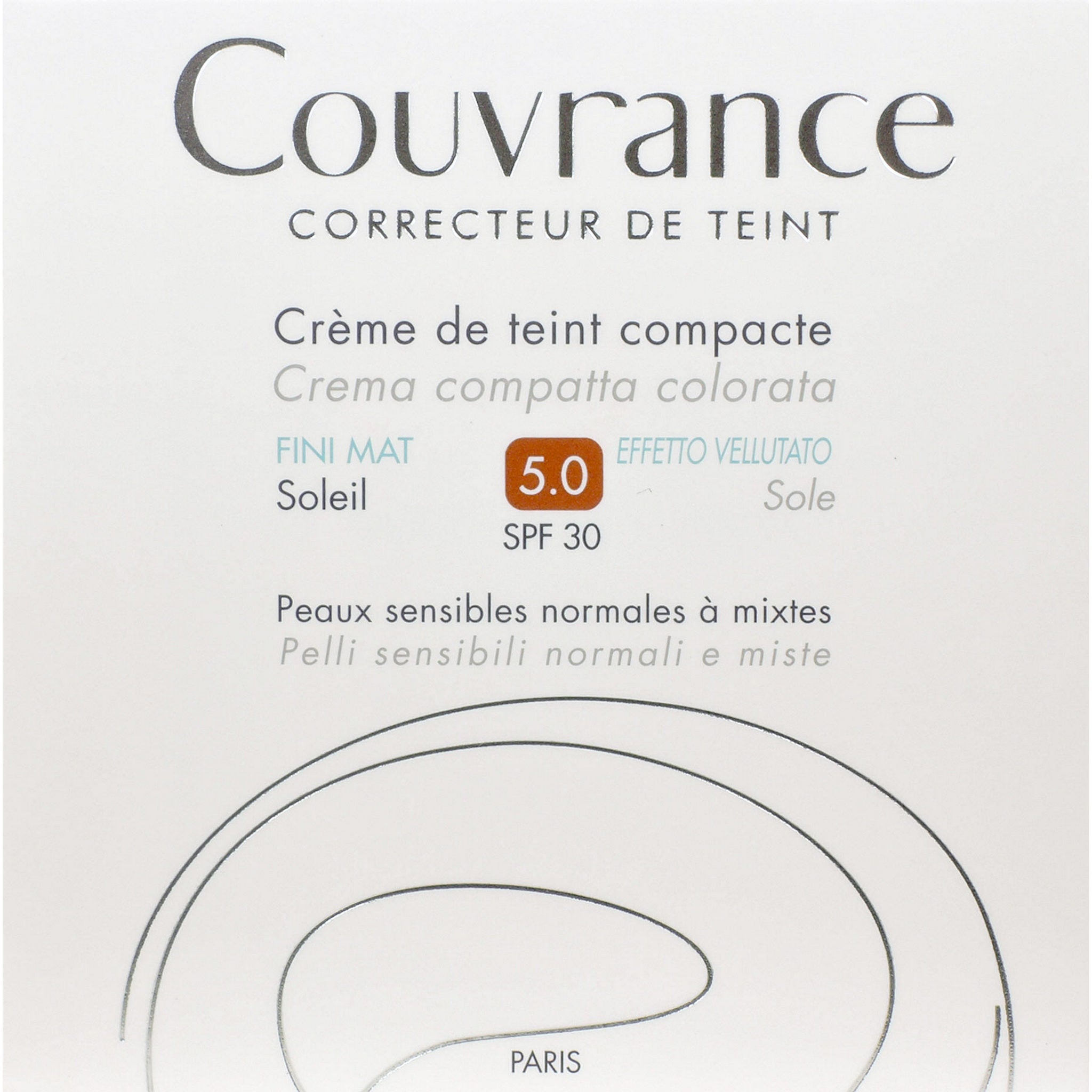 AVENE COUVRANCE CREMA COMPATTA COLORATA SPF30 Formato Trousse da 10 grammi. Tonalita': Sole Cema compatta correttiva ad alta tollerabilita' che permette di dissimulare con efficacia le imperfezioni cutanee pronunciate. Dalla consistenza oil-free e' adatto alle pelli sensibili normali e miste. Ha un effetto coprente elevato senza l'effetto "maschera". Corregge anche le imperfezioni del corpo. Modalita' d'impiego Applicare il prodotto con l'aiuto della spugnetta con tocchi leggeri su tutto il viso. insistendo sulle imperfezioni, poi sfumare. Si consiglia di lavare regolarmente la spugnetta e di farla asciugare. Senza profumo. Resistente all'acqua. [EAN: 3282770082616]