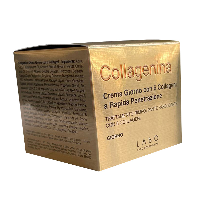 - Crema da utilizzare come trattamento rimpolpante rassodante da giorno con 6 collageni a peso molecolare differenziato