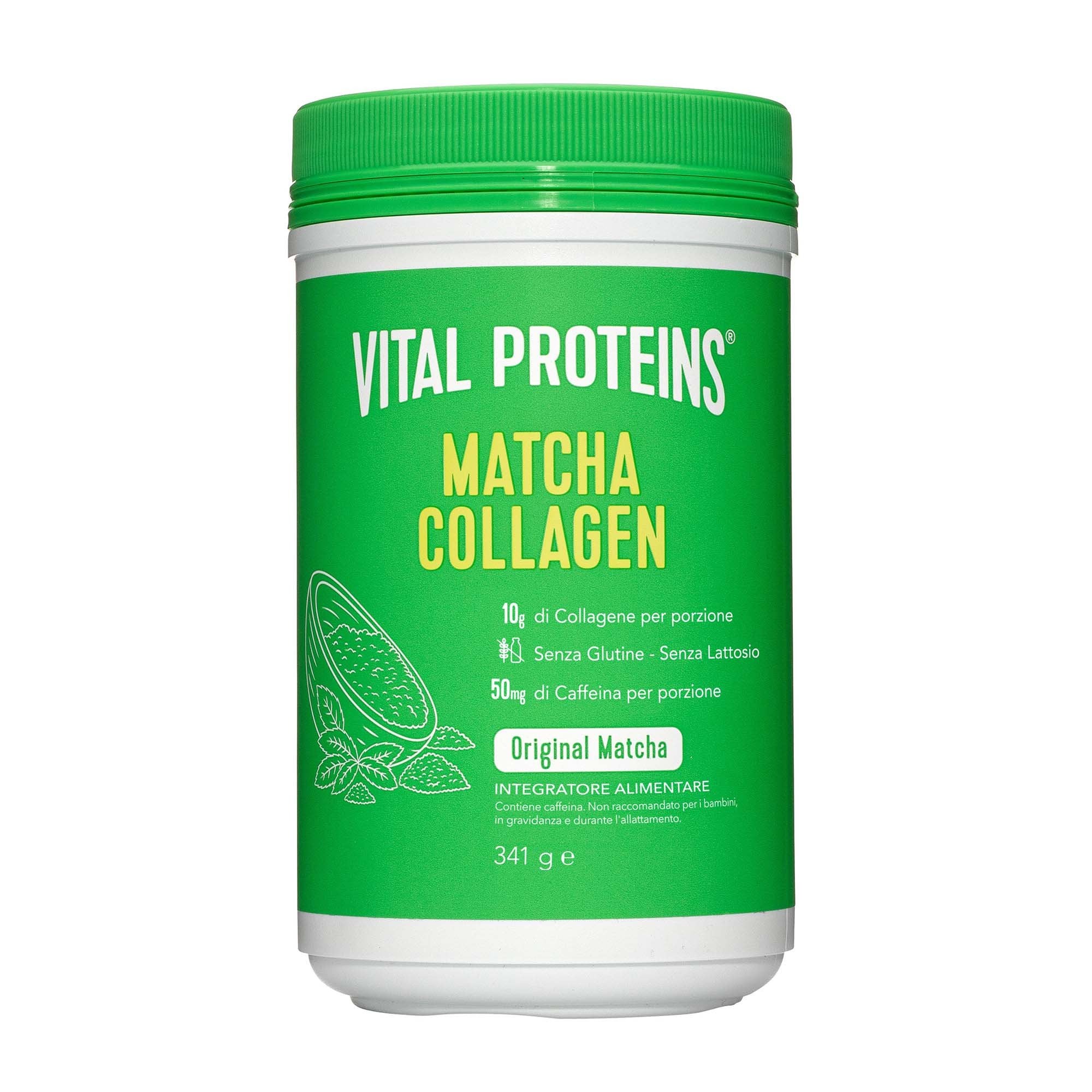 VITAL PROTEINS MATCHA COLLAGEN Integratore alimentare con te' verde MatchaFormatoBarattolo da 341 g.Vital Proteins Collagen Matcha e' ottenuto da te' verde giapponese matcha di alta qualita' e collagene di origine bovina per garantire la massima qualita' e il massimo beneficio nutrizionale. In formato polvere, dal gusto di Matcha. Contiene 10 g di peptidi di collagene e 50 mg di caffeina per porzione. L'estratto di te' verde con L-teanina ha un effetto tonico verso la stanchezza fisica e mentale.