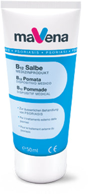 maVena B12 Pomata Descrizione Dispositivo medico in pomata per il trattamento topico della pelle infiammata e squamosa nel caso della psoriasi. Contiene la sostanza funzionale cianocobalamina (vitamina B12) che pu? bloccare le sostanze pro-infiammatorie, come monossido di azoto (NO) negli strati cutanei superiori e ridurre cos? il grado d'infiammazione. In combinazione con acidi grassi polinsaturi (omega-3), polifenoli e fattori idratanti naturali, la funzione di barriera della pelle (barriera cutanea) viene stabilizzata, con conseguente attenuazione di prurito ed arrossamento. Mavena B12 Pomata non contiene cortisone e quindi pu? essere utilizzato senza correre i rischi connessi. Modalit? d'uso Mavena B12 Pomata va applicata piu volte al giorno, nelle quantit? specificate nella tabella seguente. Con l'unita polpastrello (Finger Tip Unit, FTU), che corrisponde ad un filo di pomata dello spessore di 0,5 cm dalla punta del dito sino alla piega della prima falange corrispondente ad una quantit? di circa 0,5 g, si pu? applicare su una superficie di pelle, che corrisponde a circa 2 palmi. Le quantit? necessarie dipendono dall'eta, quindi per un bambino di 6 mesi per una adeguata applicazione su una gamba inclusiva anche del piede sar? necessario 1,5 FTU, per un bambino di cinque anni serviranno 3 FTU e per un adulto 8 FTU. Et? Viso e collo Braccio e mano Gamba e piede Torace (davanti) Schiena e glutei 3-6 mesi 1 FTU* 1 FTU* 1,5 FTU* 1 FTU* 1,5 FTU* 1-2 anni 1,5 FTU* 1,5 FTU* 2 FTU* 2 FTU* 3 FTU* 3-5 anni 1,5 FTU* 2 FTU* 3 FTU* 3 FTU* 3,5 FTU* 6-10 anni 2 FTU* 2,5 FTU* 4,5 FTU* 3,5 FTU* 5 FTU* Adulti 2,5 FTU* 5 FTU* 8 FTU* 7 FTU* 7 FTU* *Unit? Polpastrello Il trattamento con Mavena B12 Pomata dovrebbe essere eseguito per tutto il tempo necessario. Date le caratteristiche note della sostanza funzionale si presuppone che sia possibile anche una durata prolungata del trattamento senza particolari precauzioni. Attenersi alla posologia indicata in queste istruzioni per l'uso. Composizione 1 g di pomata contiene 0,7 mg di cianocobalamina (vitamina B12). Altri componenti: aqua, persea gratissima (avocado) oil, persea gratissima (avocado) oil unsaponifiables, glycerin, hydroxyethyl urea, dipolyhydroxystearate, salvia hispanica (chia) seed oil, hydrogenated vegetable oil, hydrogenated castor oil, magnesium sulfate, magnesium stearate, zanthoxylum bungeanum fruit extract, sodium chlorid, polysorbate, polyaminopropyl biguanide Senza cortisone, parabeni, profumo e coloranti. Avvertenze In caso di nota ipersensibilit? ad uno dei componenti di Mavena B12 Pomata, il preparato non deve essere utilizzato. Non ingerire. Evitare il contatto con le mucose, ferite o pelle lesa. Se usato correttamente non ? necessario adottare particolari precauzioni. ? richiesta particolare prudenza nell'uso di Mavena B12 Pomata se si presenta un'ipersensibilit? al nichel (allergia da contatto). Sono poi possibili ulteriori fenomeni di ipersensibilit?, come per esempio al cobalto, che ? presente nella vitamina B12. Nel caso di neonati sotto le 4 settimane il prodotto va usato dopo avere consultato il medico, poich? non si dispone di sufficienti esperienze al riguardo. Informare il medico o il farmacista nel caso in cui si soffra di altre malattie, di allergie o si assuma o si applichino esternamente altri medicamenti. Effetti indesiderati possibili sono rare reazioni locali nel luogo del trattamento (= 1/10 000-1/1000), come irritazioni cutanee (arrossamenti, prurito, bruciore). Queste sono di natura passeggera e non sono necessariamente in relazione con l'uso di Mavena B12 Pomata. Sebbene tali irritazioni cutanee possano regredire anche continuando l'uso di Mavena B12 Pomata si consiglia di sospendere il trattamento poich? in rari casi potrebbe essere presente un'allergia alla sostanza funzionale o ad un altro componente di Mavena B12 Pomata. Se si osservano effetti indesiderati qui non descritti si dovrebbe informare il proprio medico o il proprio farmacista. La colorazione rosa di Mavena B12 Pomata e dovuta alla sostanza funzionale cianocobalamina (vitamina B12). Trattandosi di una vitamina idrosolubile, eventuali macchie su capi di vestiario normalmente possono essere rimosse completamente con lavaggio in lavatrice ad almeno 30?C. Tuttavia dopo l'applicazione e meglio lasciare penetrare il Mavena B12 Pomata nella pelle prima di rimettersi i vestiti. Tenere fuori dalla portata dei bambini. Quando si applica la pomata nella zona genitale o anale, a causa della presenza di olio di avocado nella composizione, pu? portare una riduzione della resistenza alla trazione e compromettere sicurezza di preservativi in lattice. Conservazione Conservare lontano da fonti di calore, a temperatura compresa tra 5?C ed i 25?C. Questo dispositivo medico deve essere usato soltanto fino alla data indicata riportata sul tubo. Da utilizzare entro 6 mesi della prima apertura. Formato Tubo da 50 ml. Cod. 3120200 [EAN: 7611456312024]