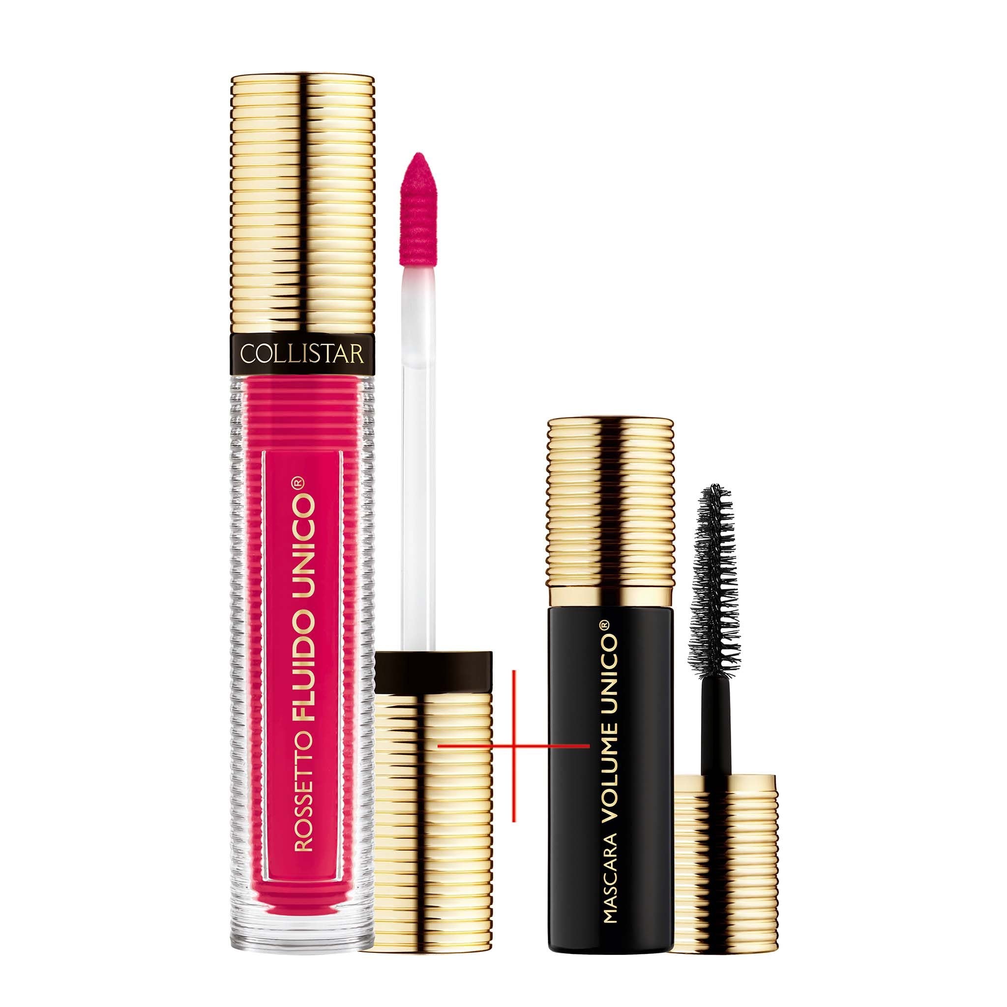 COLLISTAR ROSSETTO FLUIDO UNICO EFFETTO MAT MORBIDO TENUTA ESTREMA N 8 + MASCARA VOLUME UNICO Formato La confezione contiene: Rossetto FLuido Unico 8 5 ml Mascara Volume Unico 6 ml UN ROSSETTO FLUIDO ASSOLUTAMENTE UNICO - nella texture mat morbida, sensoriale e confortevole che veste le labbra di un colore pieno e intenso gi? dal primo passaggio - nella tenuta estrema per un make-up ad alta definizione - nell?applicatore grafico di precisione, un?esclusiva Collistar, che disegna e rimodella le labbra in modo facile e preciso, senza rischio di sbavature - nella formula idratante e anti-et? con Acido Ialuronico e Collagene. Nella stessa confezione, IN REGALO* Mascara Volume Unico infoltente modellante ?su misura?, che sublima ogni tipo di ciglia enfatizzandone volume, lunghezza e curvatura. EDIZIONE LIMITATA [EAN: 8015150114882]