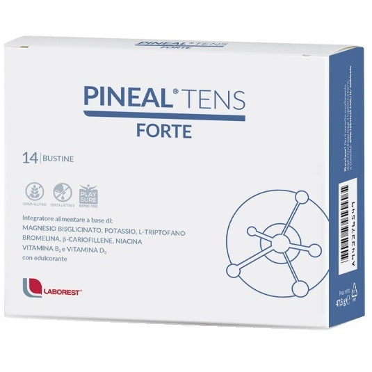 - Pineal Tens Forte apporta un alto dosaggio di Magnesio bisglicinato: tale forma chelata del Magnesio si caratterizza dall’essere più facilmente assorbita rispetto ad altre forme (es. magnesio ossido, idrossido, carbonato) e minimizza le tipiche problematiche gastroenteriche.